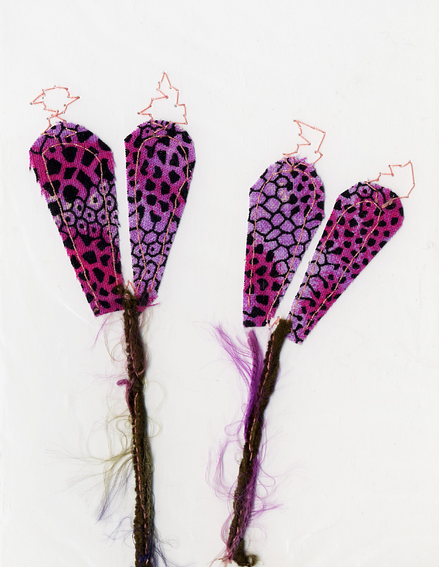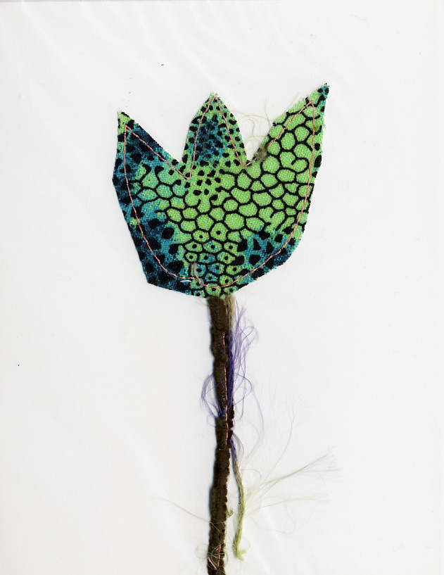 I inherited several yards of interesting fabric and decided to play with it. I cut out small flower shapes and stitched them on paper.