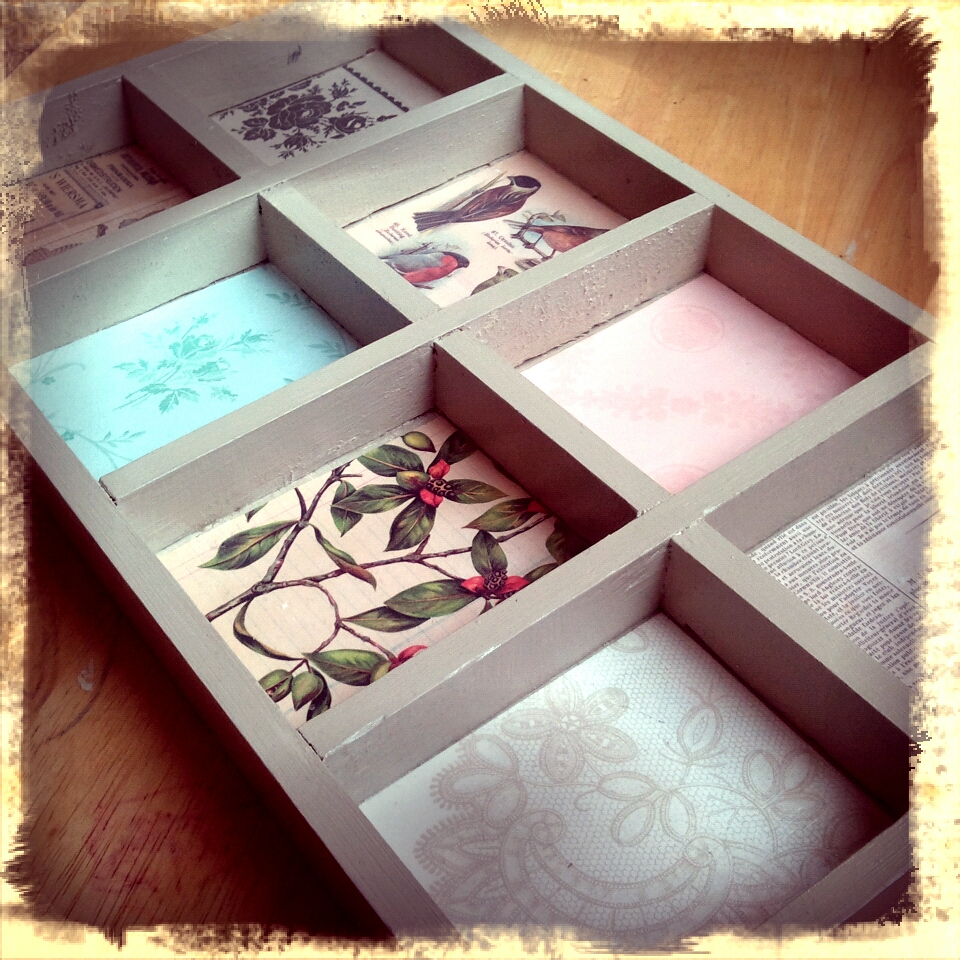 After two coats of paint, pretty paper and modpodge you wouldn’t know this box used to be plain.