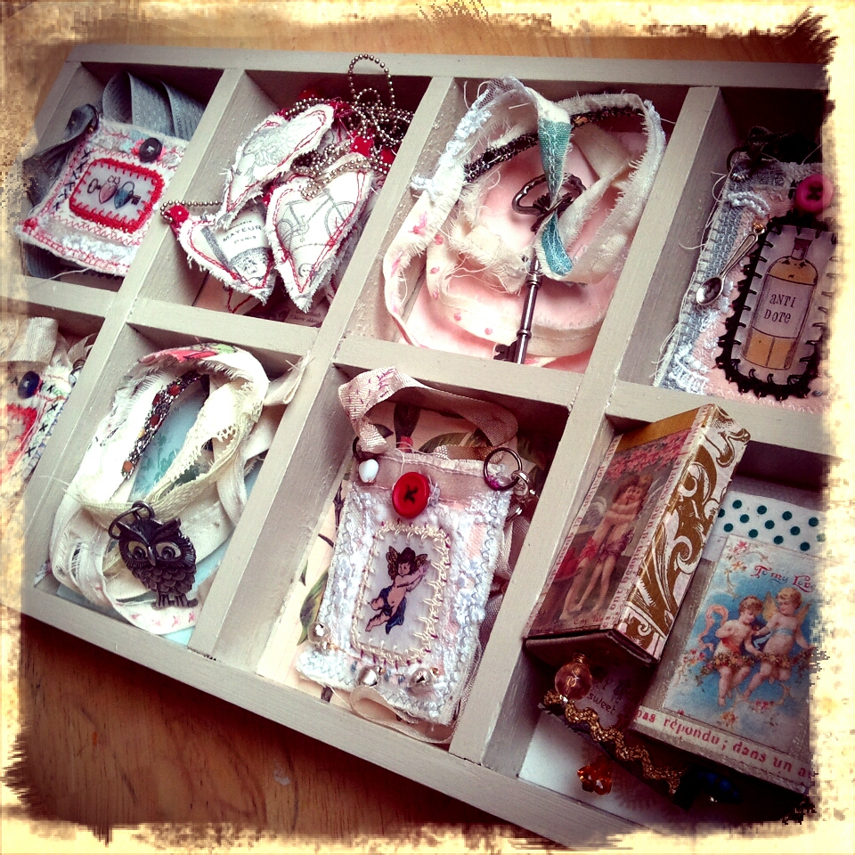 It now holds different ‘trinkets’: necklaces, pins, matchboxes and other little things I’ve made.