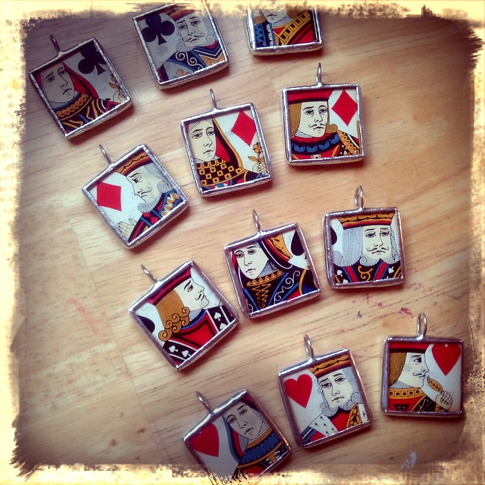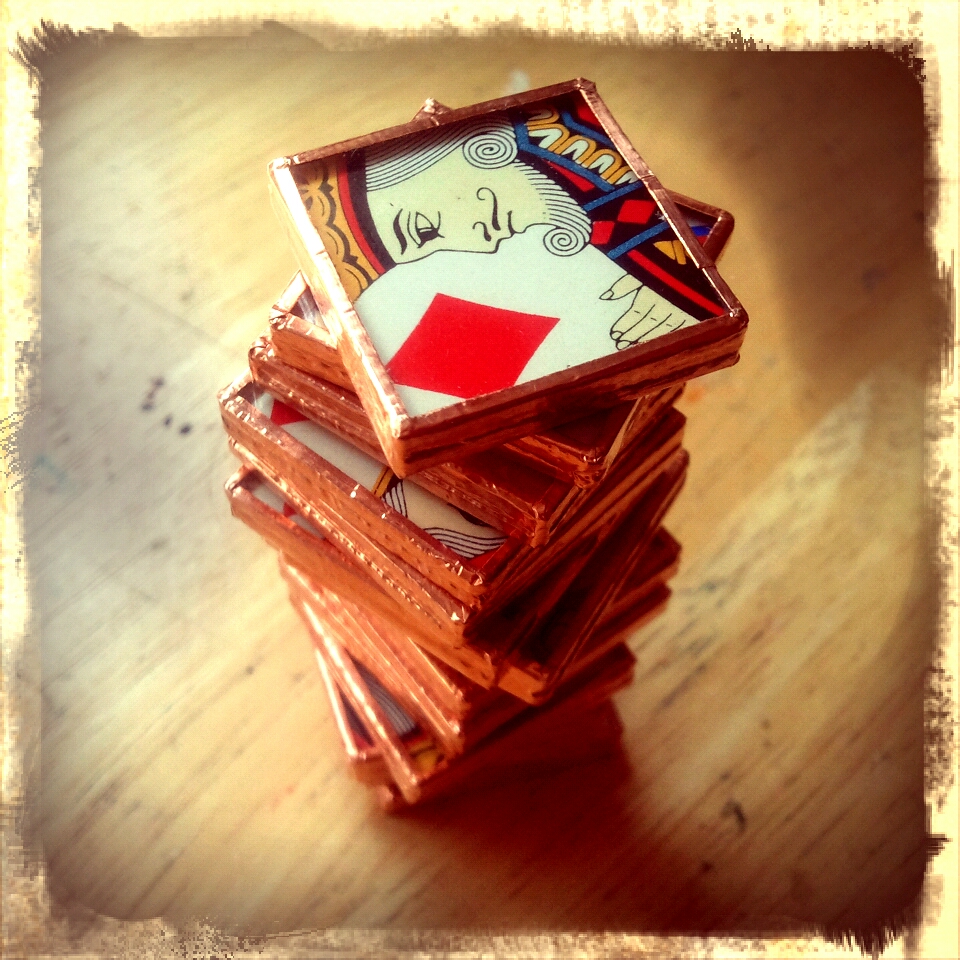 I used an old set of playing cards.  They make cool images.  I used all the face cards and then I ran out of glass.
