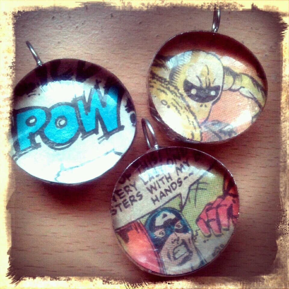 More soldering I used some old comics and glass gems from the floral section at the craft store. I like the distorted look, without messing with real resin. Share this:Tweet Email a link to a friend (Opens in new window) Email Share on Tumblr Share on WhatsApp (Opens in new window) WhatsApp Like Loading... Related