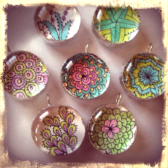 I am pretty sure that eventually I will give resin a try. For now, I’ve been soldering again. Using the glass gems from few weeks ago, this time using my own doodles for images, instead of cutouts from already printed pages.