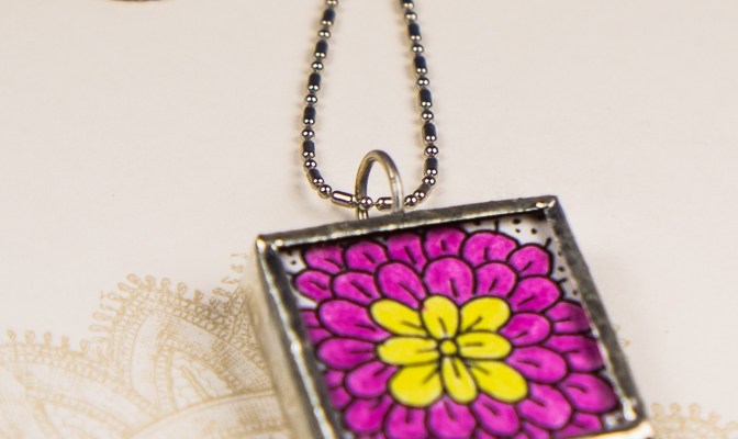 Here are a couple of pieces that I made some time ago. Probably around the time I learned zentangle. I zentangled desert blooms. And made some soldered jewelry with the tiny zentangle squares.
