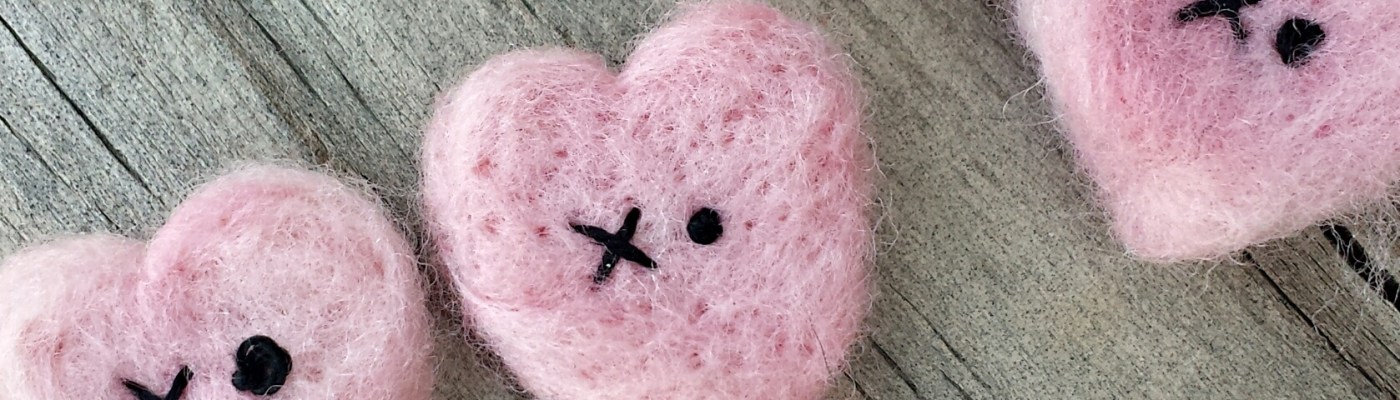 Off course in between all of this crafting finds its way. Hearts have been on my mind. I used a small cookie cutter to shape them up. Pulled a little bit of wool roving, stuck it inside the cookie cutter shape, and poke poke poke……until it took a heart shape.