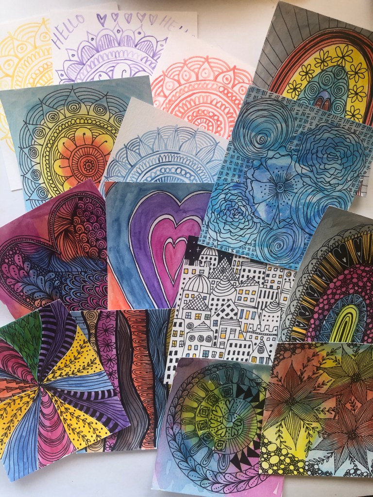 Writing and receiving letters has been one of my favorite things. It’s like a small gift in the mail. Always a bright spot when it comes with a stack of bills. So when I recently saw that a local group called Creative Catalysts was looking for both letter writers and letter receivers I decided to join. This was to connect and relieve some of the loneliness and stress of the Covid-19 that has now been going for several months. I was a letter writer, except I really didn’t write letters, I made little art cards and send them to strangers that were assigned to me. It was a lot of fun creating these little pieces of art and sending them on their journey.
