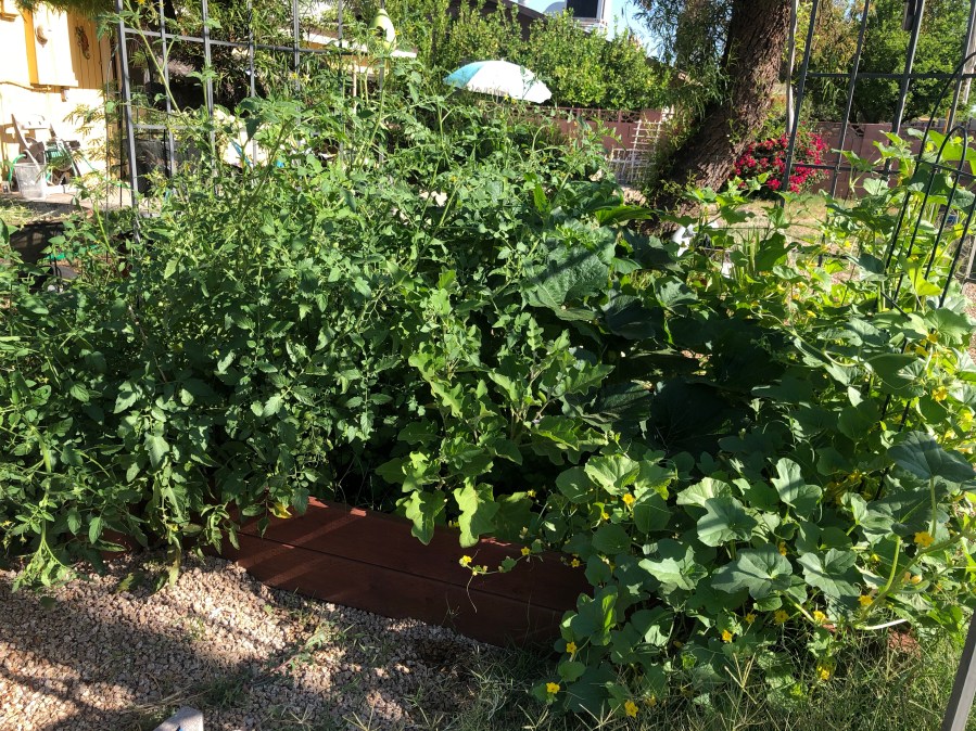 As an immigrant I often carry a little bit of an outsider feeling. Not really feeling right at home. Not knowing if I belong. And in a culture-society where people work around the clock I am not always able to find the time to connect even with people that I feel connected to. This often can make me feel disconnected and lonely. Becoming an amateur gardener has helped me with those feelings. When I am out tending to my garden I notice that my senses are getting fully engaged, which in turn gets me back to myself, and then I feel less disconnected and less lonely. Gardening has taught me to focus on my senses (sight, sound, smell, taste and touch) and everything will be ok. See the plants, the birds, the bees, the ants, the crickets. Hear the birds, the bees buzzing, the sound of my hands digging. Smell the tomatoes, mint, basil. Feel the dirt, pull the weeds. Feel the roundness of the tomatoes, the slight roughness of the cucumbers. The little needles on the zucchini when I pick them. And then taste the sweetness of them all when I eat them. In addition to making friends with plants and critters, I made friends with the next door neighbor who has chickens. We have started trading produce for eggs. And once I even got to hold one of her chickens when it decided to give it a shot at flying and flew over the fence in my yard.